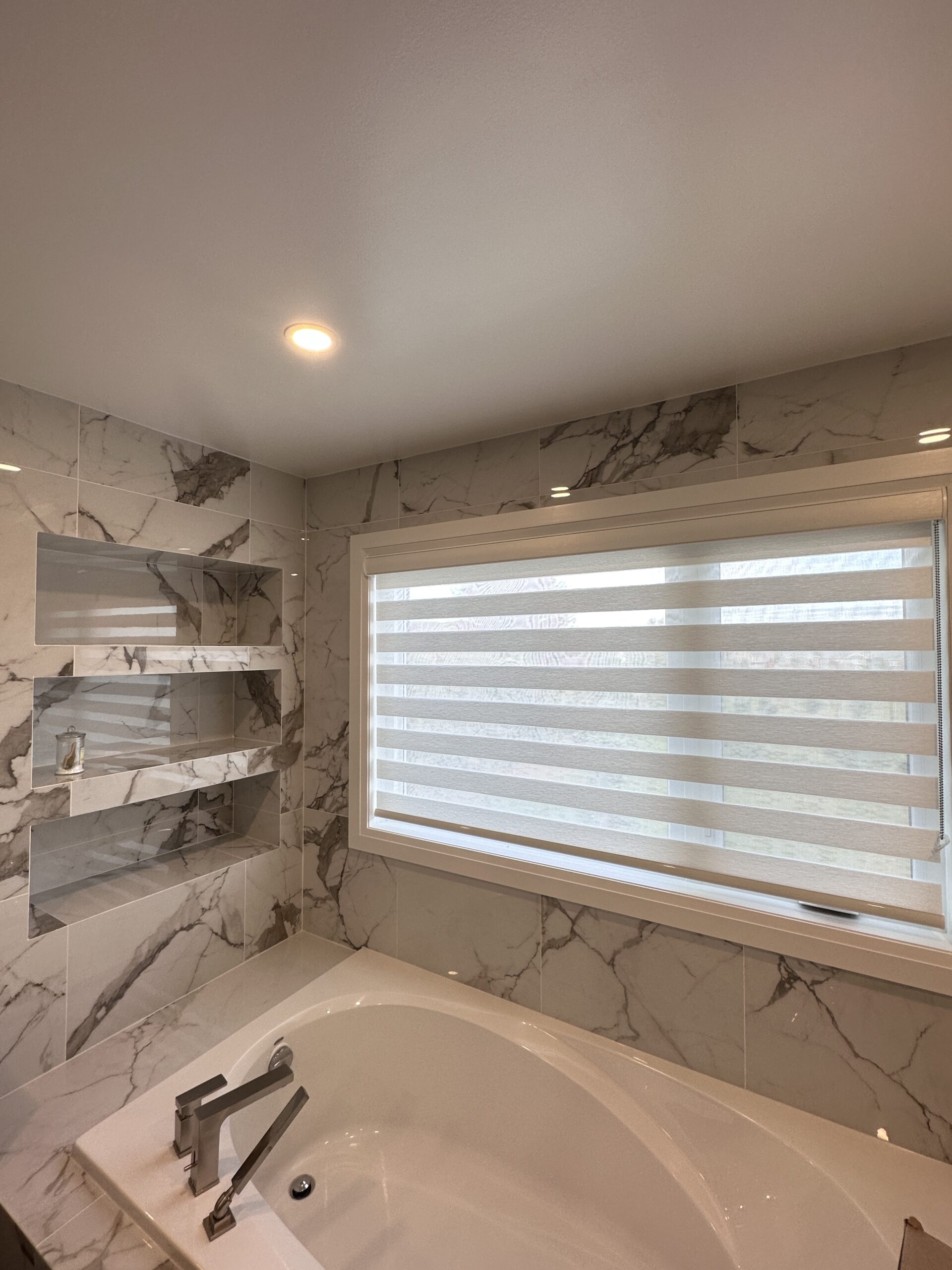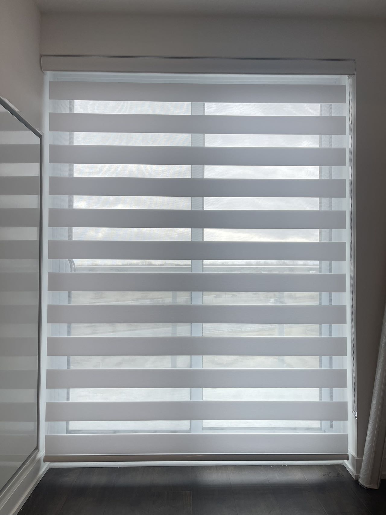Nos stores zébrés présentent des bandes horizontales alternées, transparentes et opaques, vous permettant de contrôler facilement la lumière et l’intimité tout au long de la journée. D’un simple réglage, vous passez d’une lumière naturelle tamisée à une intimité totale — sans compromettre l’élégance.