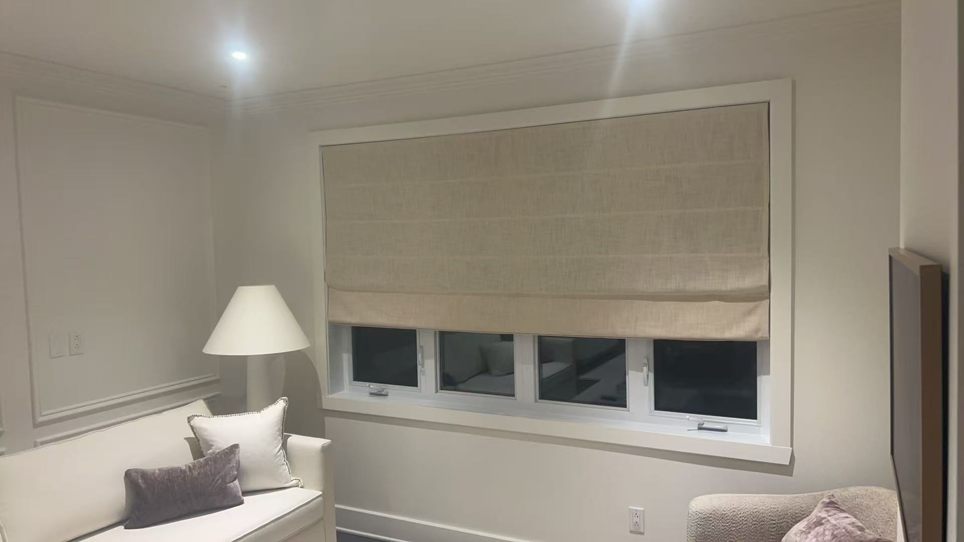 Discover the refined beauty of Roman Shades at Rideaux Rêvés Blinds. Designed with soft horizontal pleats that fold neatly when raised, these shades offer a classic look with modern convenience.